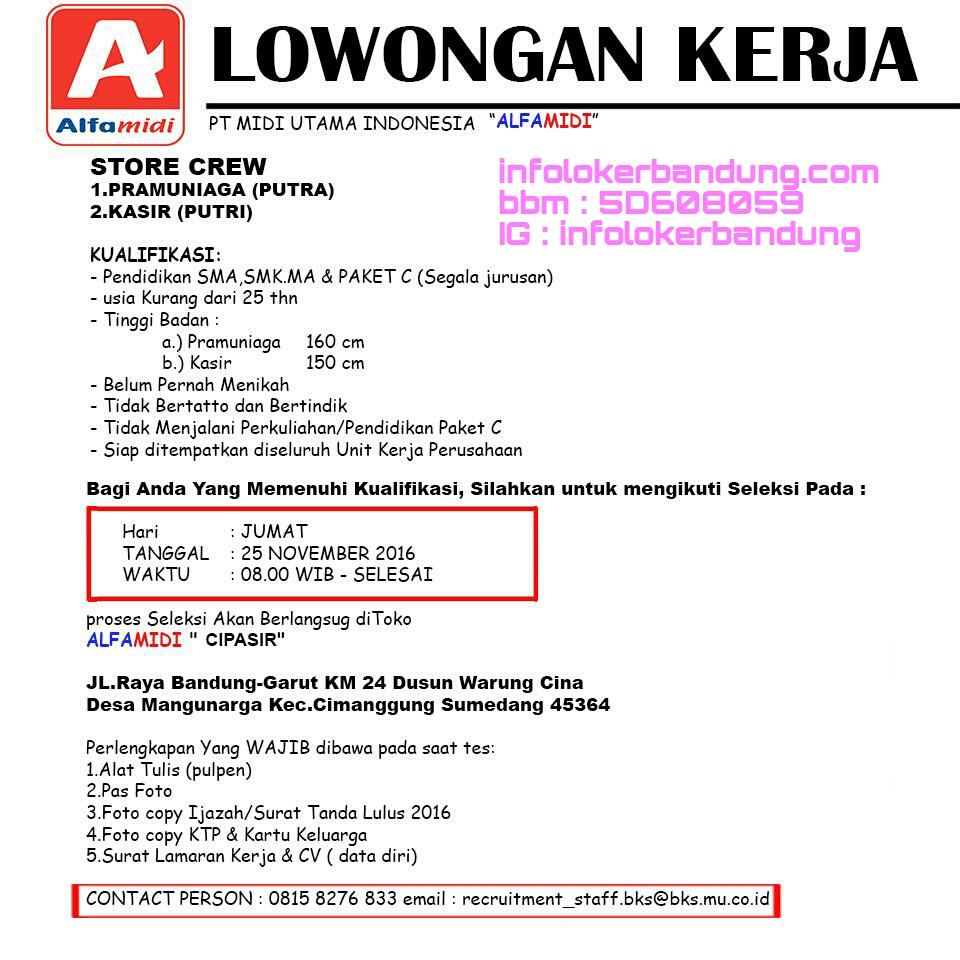 Ada banyak sekali lowongan kerja yang dibuka oleh alfamart dan alfamidi ini.